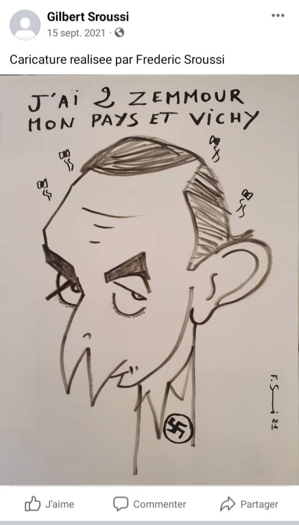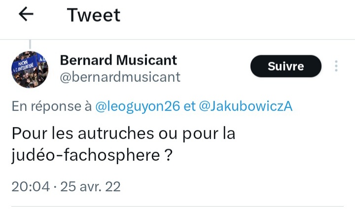 Certains « gauchos juifs » veulent faire la pluie et le beau temps en France. Ils qualifient souvent leurs opposants de fachos, les militants juifs de droite y compris. Ils harcèlent et menacent les gens qui ne sont pas du même avis, ils se permettent beaucoup de choses voici un exemple concret ci- dessous. Vous trouverez ci-joint le lien de la publication ici.